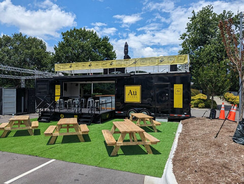 Built for tailgate tours, this compact unit features a roof deck, bar area, rear space for storage or prep, and golf cart storage. Requires only 100 power. Ideal for trackside, VIP, outdoor events, tours, and support for larger activations.